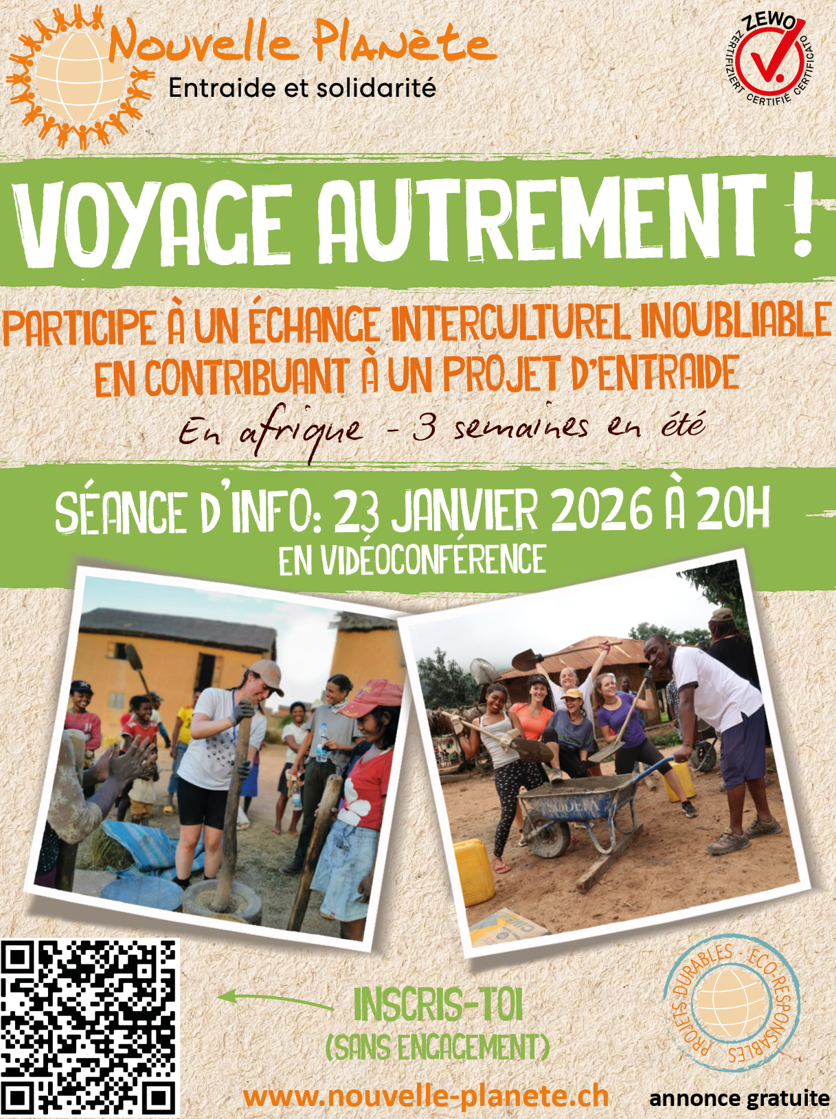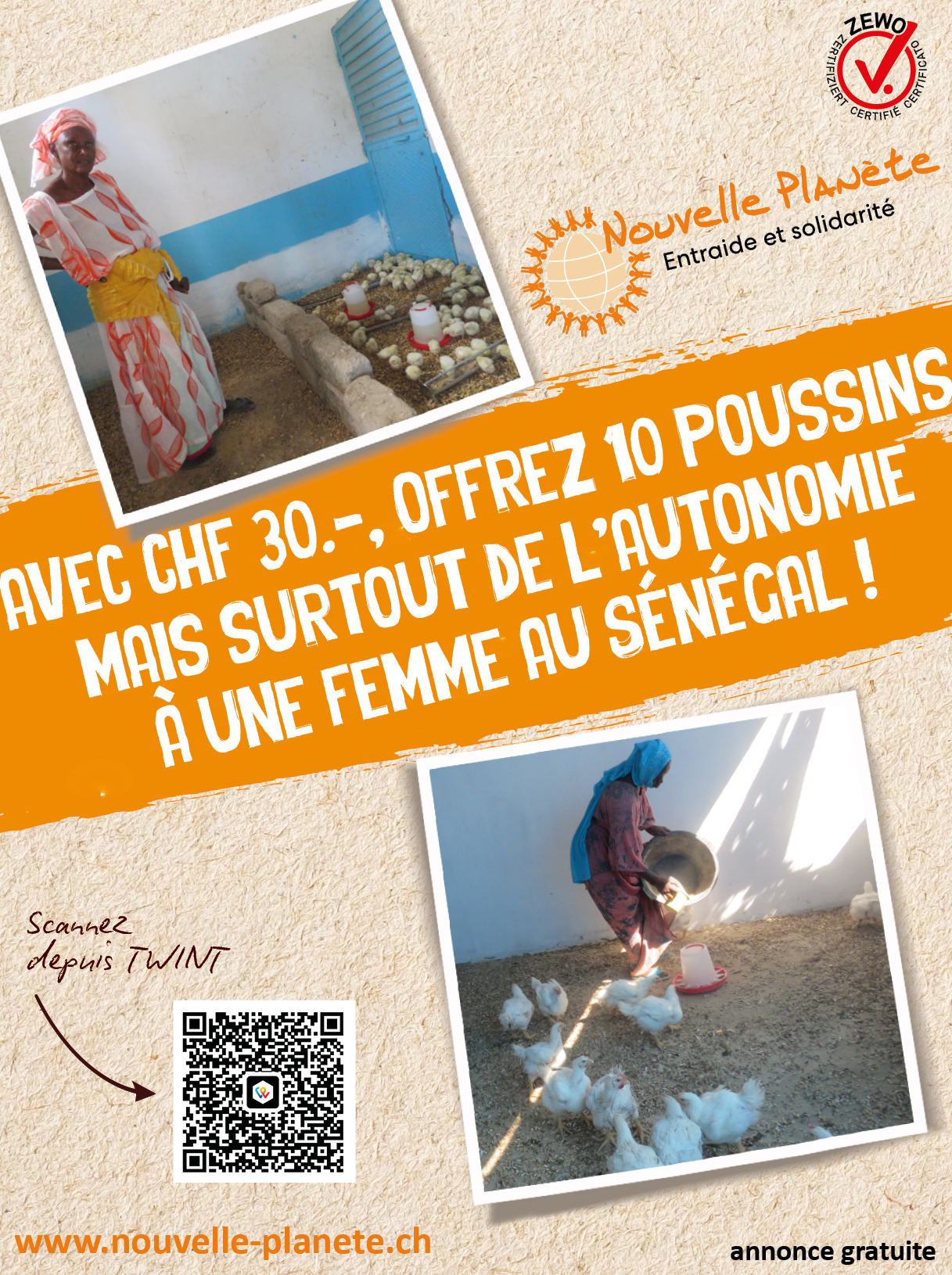 En insérant l’une ou l’autre de ces annonces pour combler un espace dans vos pages rédactionnelles ou publicitaires, vous contribuez à faire connaître les actions de Nouvelle Planète en faveur de projets concrets et durables dans nos pays d’intervention.